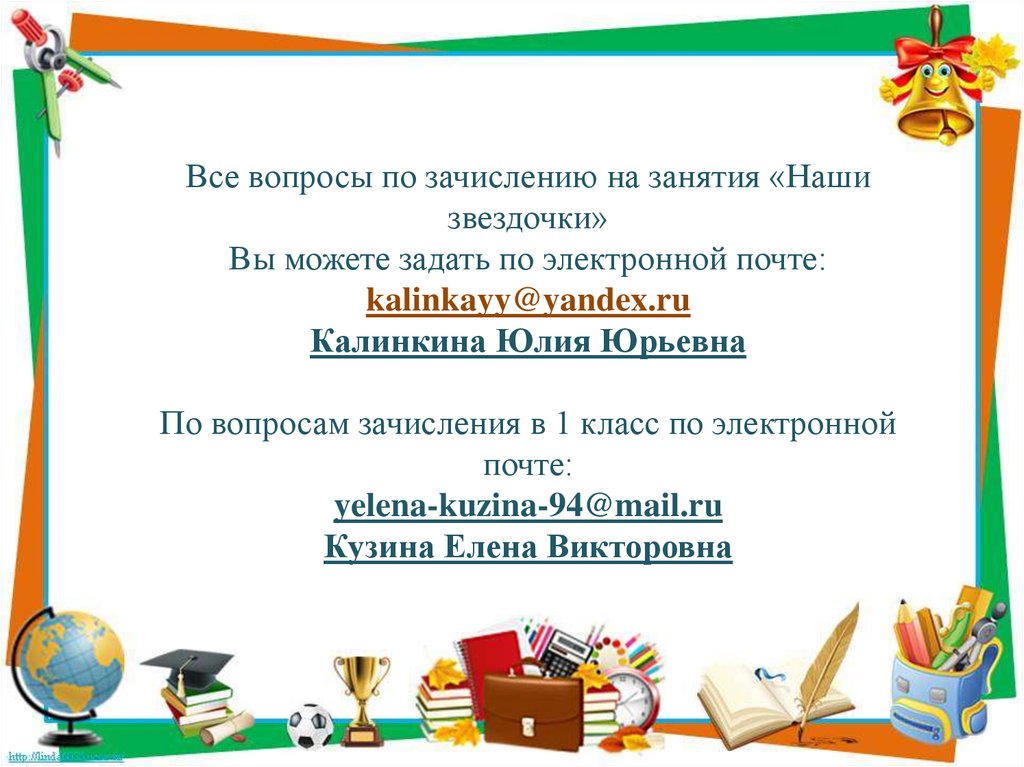 Все вопросы по зачислению на занятия «Нашизвездочки»