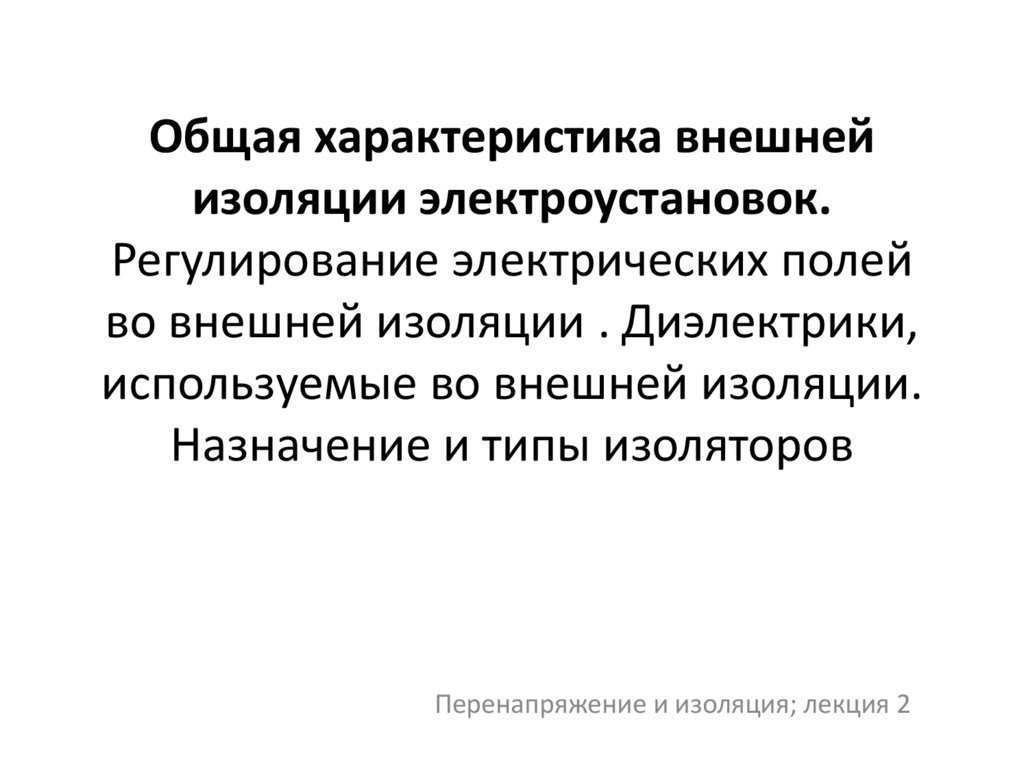 2 лекция Общая характеристика внешней изоляции электроустановок (2) (2)