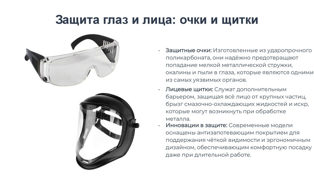 Защита глаз и лица: очки и щиткиЗащитные очки: Изготовленные из ударопрочного