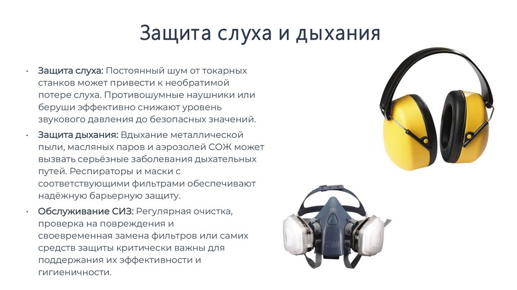 Защита слуха и ды ханияЗащита слуха: Постоянный шум от токарных
