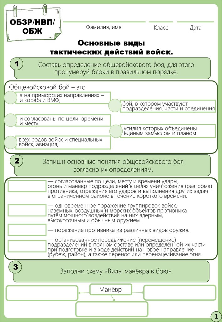 Запиши основные понятия общевойскового боя