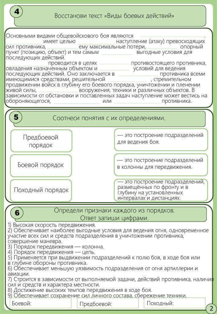 4Восстанови текст «Виды боевых действий»