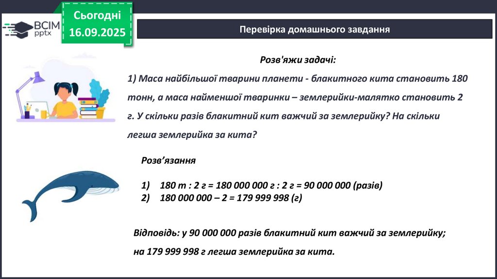 Відповідь: у 90 000 000 разів блакитний кит важчий за землерийку;