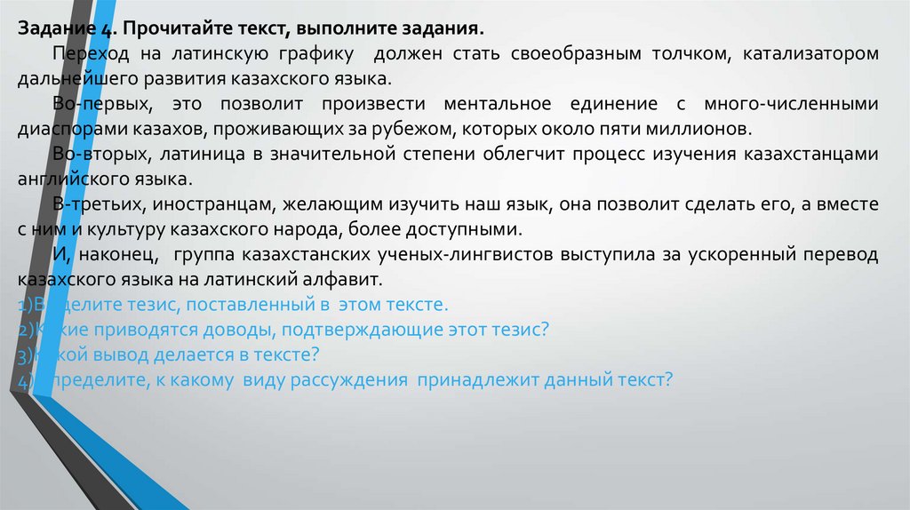 Задание 4. Прочитайте текст, выполните задания.Переход на латинскую графику должен стать своеобразным толчком, катализатором