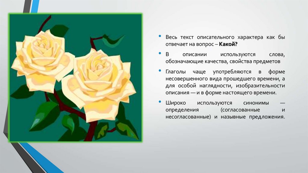 • Весь текст описательного характера как быотвечает на вопрос – Какой?