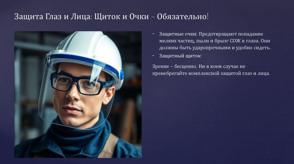Защита Глаз и Лица: Щиток и Очки – Обязательно!• Защитные очки: Предотвращают попадание