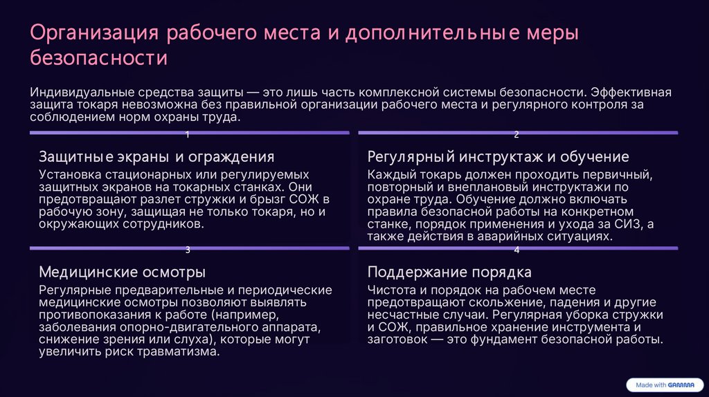 защита токаря невозможна без правильной организации рабочего места и регулярного контроля за