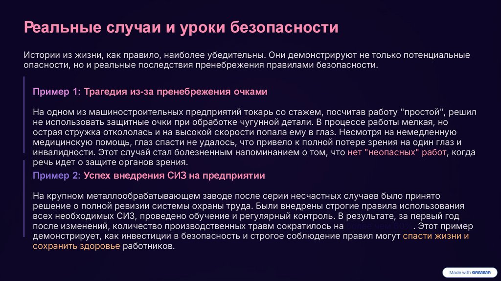 опасности, но и реальные последствия пренебрежения правилами безопасности.