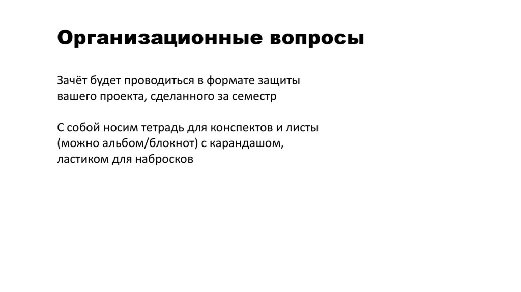 Организационные вопросыЗачёт будет проводиться в формате защиты