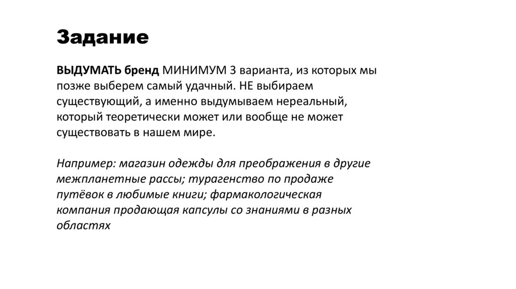 ЗаданиеВЫДУМАТЬ бренд МИНИМУМ 3 варианта, из которых мы