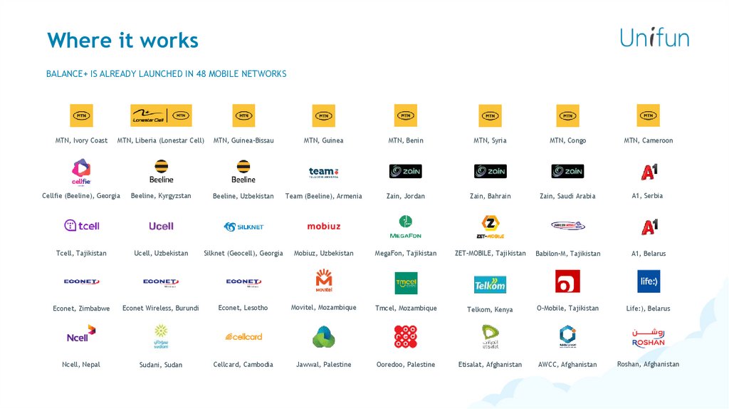 Where it worksBALANCE+ IS ALREADY LAUNCHED IN 48 MOBILE NETWORKS