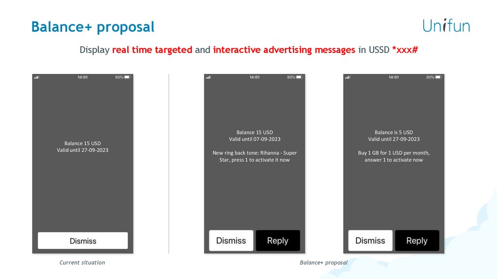 Balance+ proposalDisplay real time targeted and interactive advertising messages in USSD *xxx#