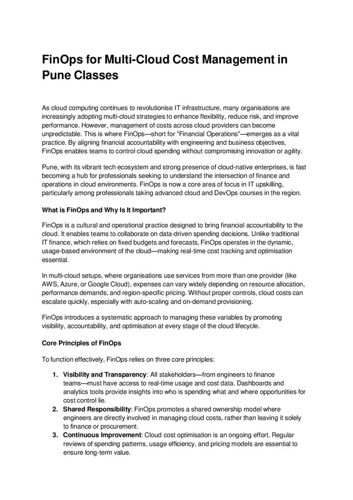 FinOps for Multi-Cloud Cost Management inPune Classes