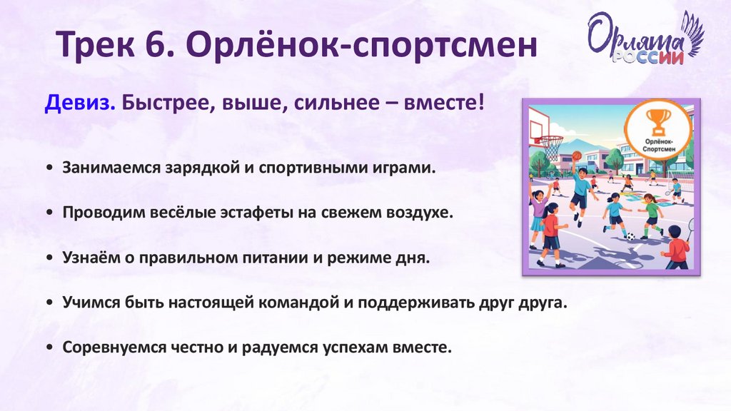 Трек 6. Орлёнок-спортсменДевиз. Быстрее, выше, сильнее – вместе!