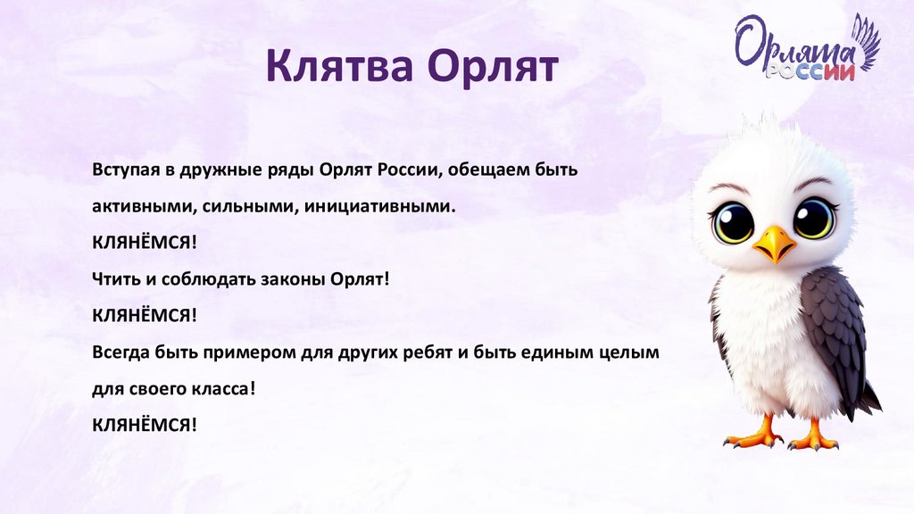Клятва ОрлятВступая в дружные ряды Орлят России, обещаем быть
