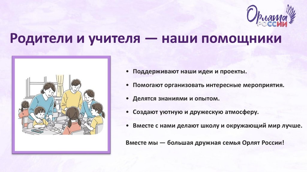 Родители и учителя — наши помощники• Поддерживают наши идеи и проекты.