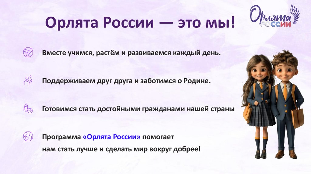 Орлята России — это мы!Вместе учимся, растём и развиваемся каждый день.