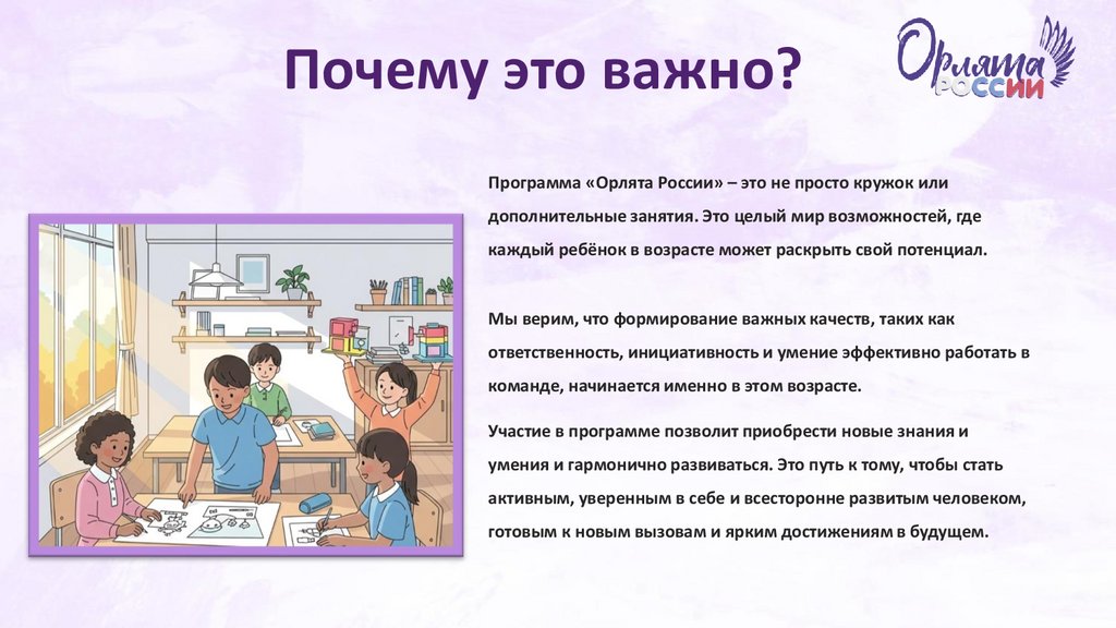 Почему это важно?Программа «Орлята России» – это не просто кружок или