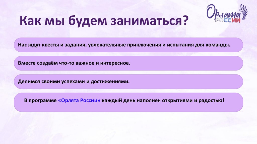 Как мы будем заниматься?Нас ждут квесты и задания, увлекательные приключения и испытания для команды.