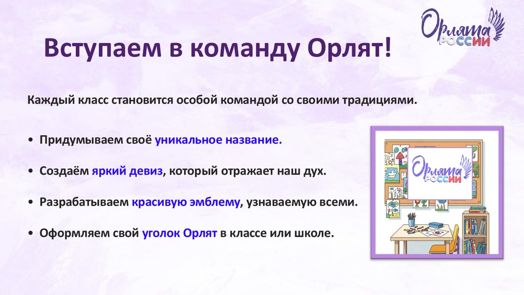 Вступаем в команду Орлят!Каждый класс становится особой командой со своими традициями.