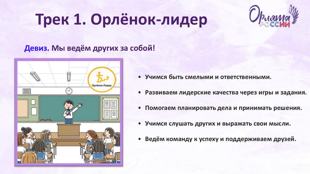 Трек 1. Орлёнок-лидерДевиз. Мы ведём других за собой!
