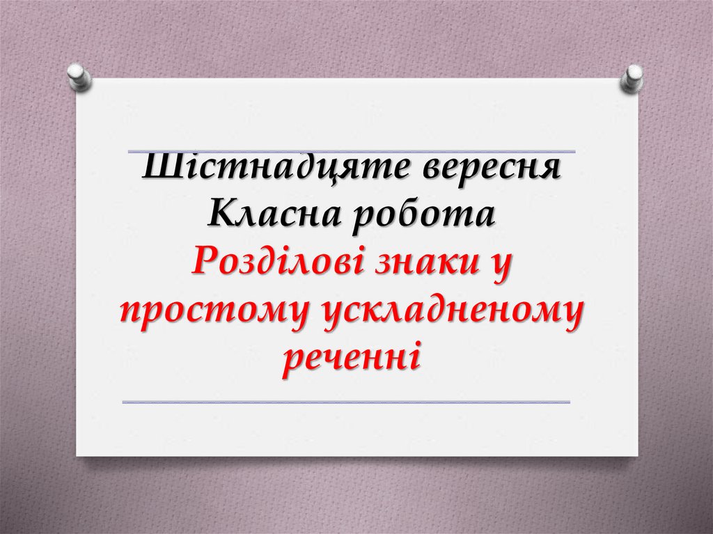 1. Шістнадцяте вересня Класна робота Розділові знаки у простому ускладненому реченні