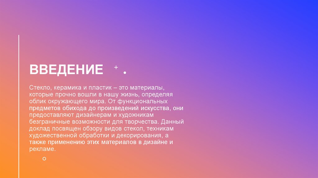 ВВЕДЕНИЕСтекло, керамика и пластик – это материалы,