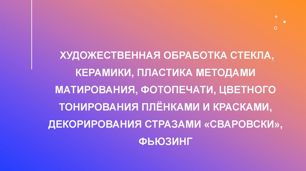 ХУДОЖЕСТВЕННАЯ ОБРАБОТКА СТЕКЛА,КЕРАМИКИ, ПЛАСТИКА МЕТОДАМИ
