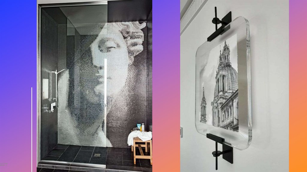 душевых кабинах, зеркалах. В рекламе – для создания