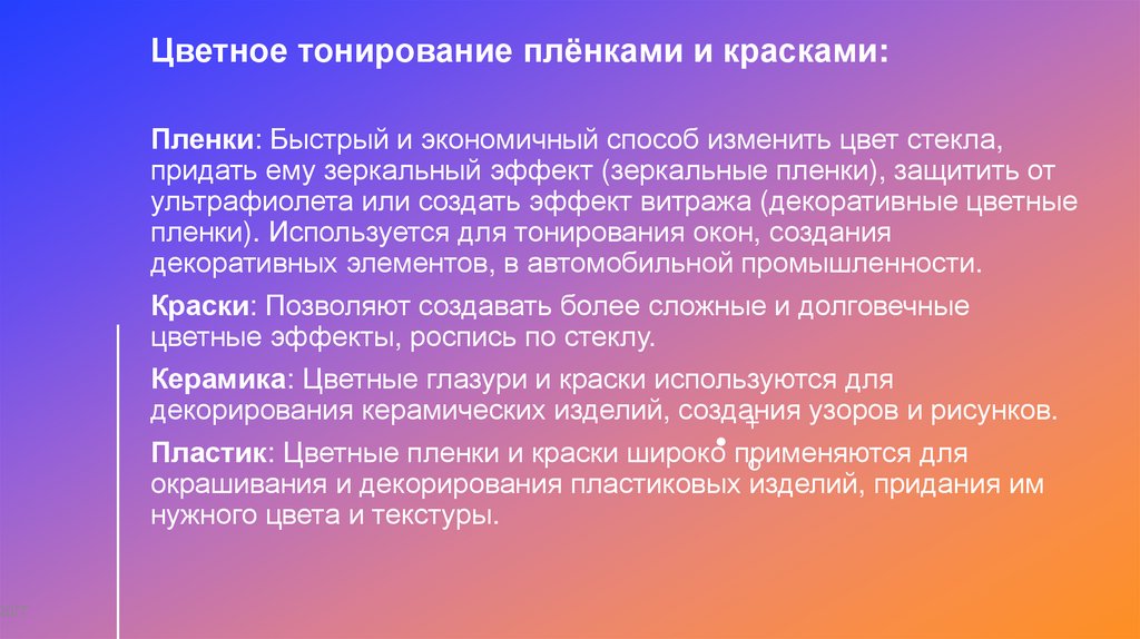 20ГГЦветное тонирование плёнками и красками: