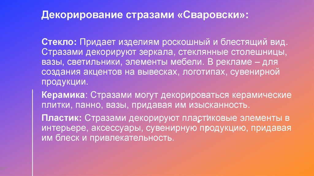 ДЕКОРИРОВАНИЯ СТРАЗАМИ «СВАРОВСКИ»,