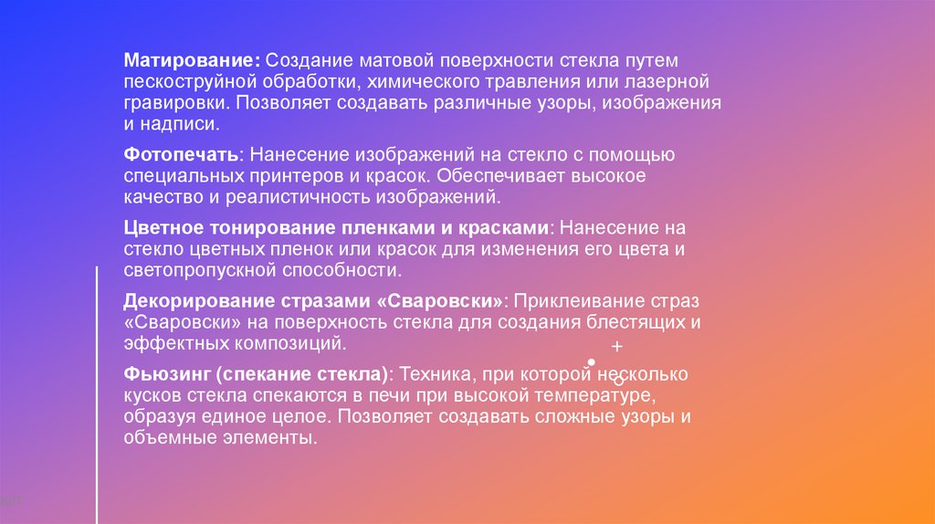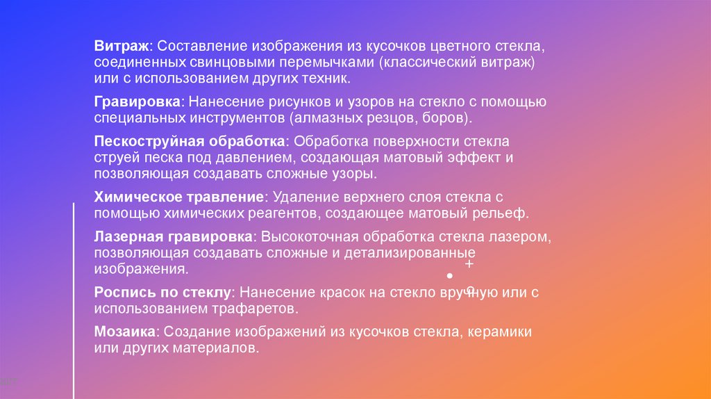 доклад посвящен обзору видов стекол, техникам