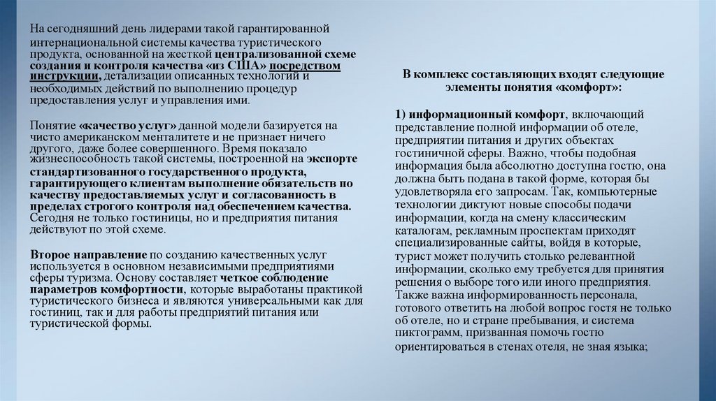 2) экономический комфорт, предполагающийудобство расчета для гостя, систему дисконтов,