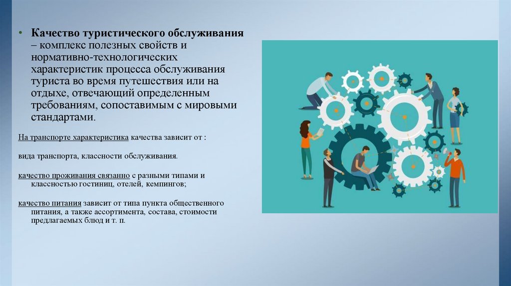 • Качество туристического обслуживания– комплекс полезных свойств и