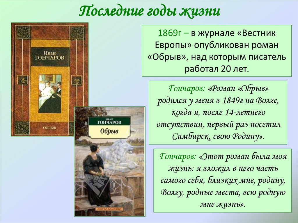 «Обыкновенная история», «Обломов», «Обрыв», названия которых