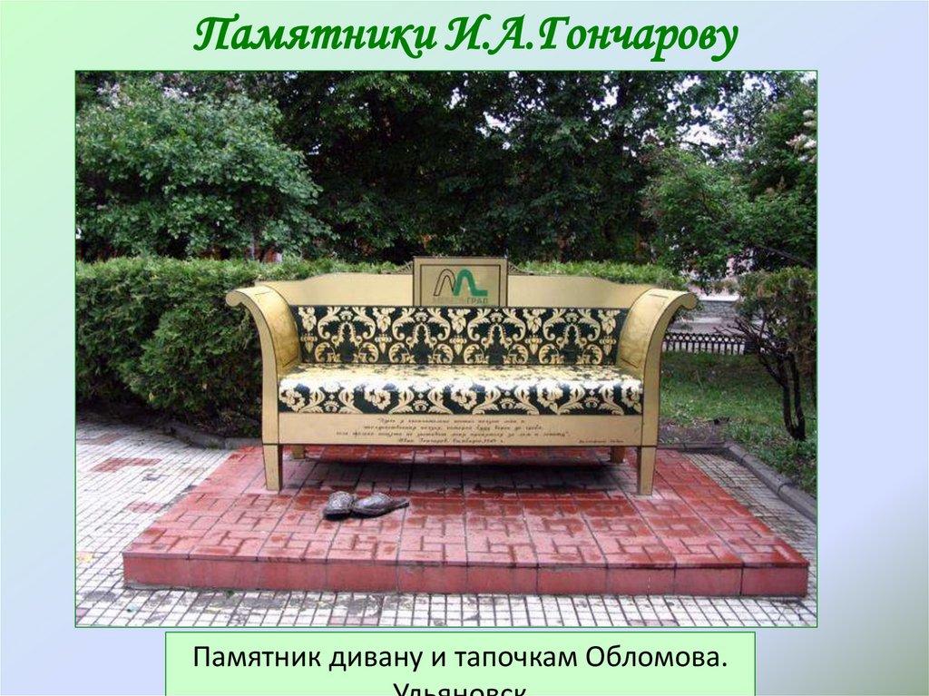 Памятники И.А.ГончаровуПамятник дивану и тапочкам Обломова.
