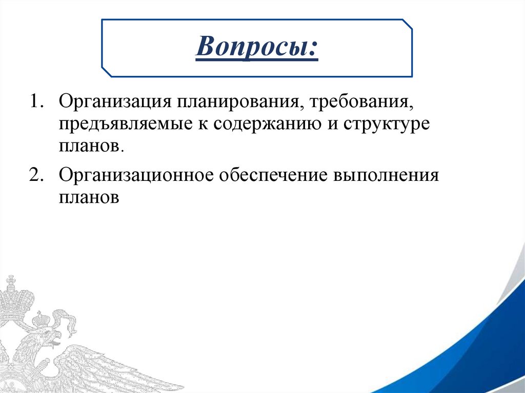 3. Вопрос 1. Организация планирования, основные требования, предъявляемые к содержанию и структуре планов
