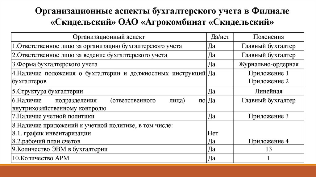 Организационные аспекты бухгалтерского учета в Филиале«Скидельский» ОАО «Агрокомбинат «Скидельский»