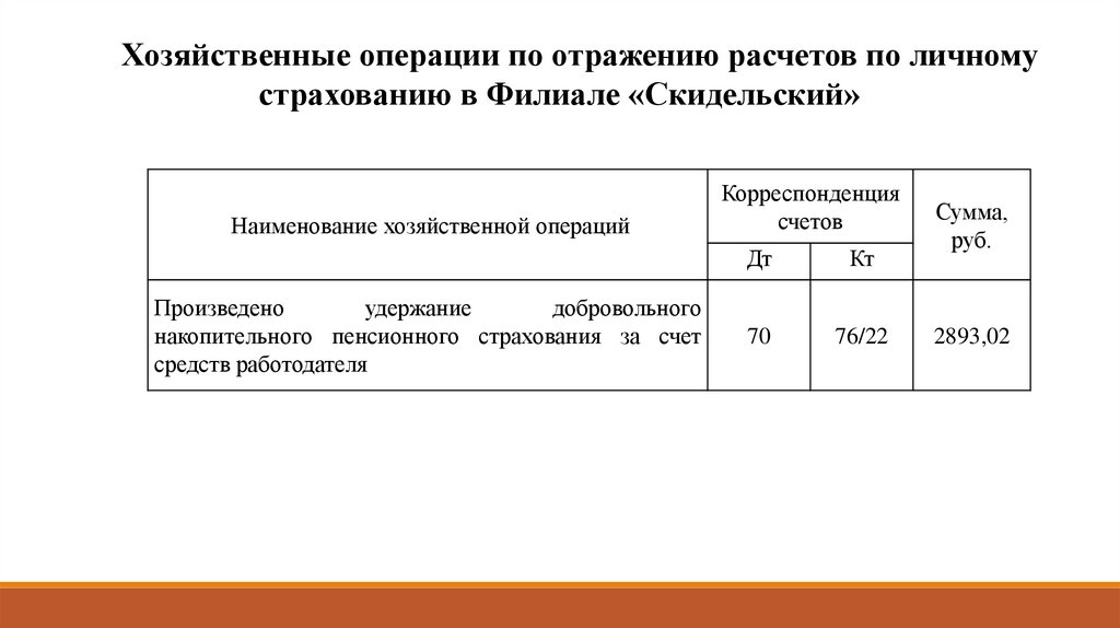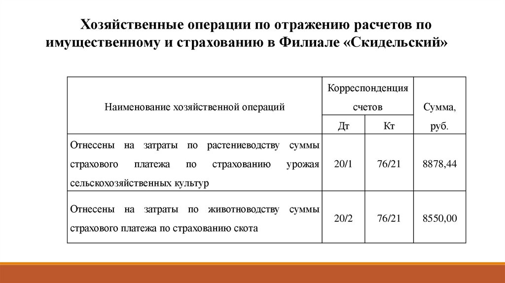 учетного процесса по расчетам по имущественному и личному страхованию.