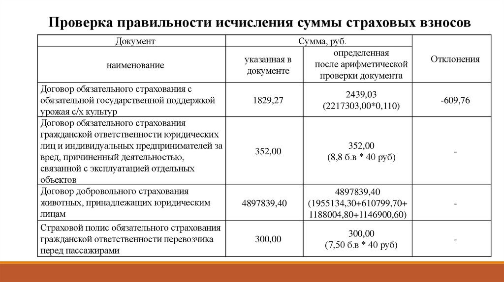 Проверка правильности исчисления суммы страховых взносовДокумент
