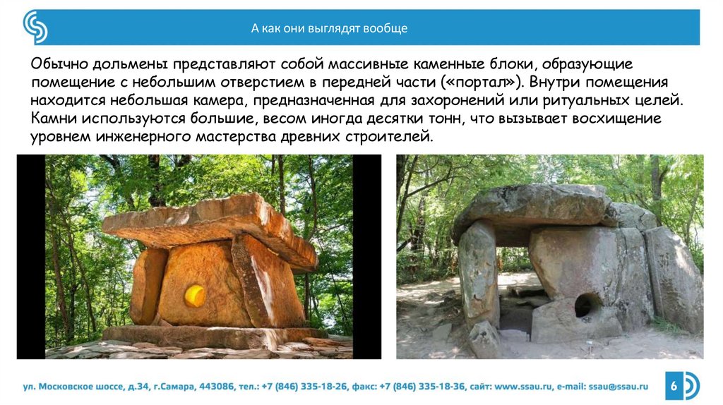 А как они выглядят вообщеОбычно дольмены представляют собой массивные каменные блоки, образующие