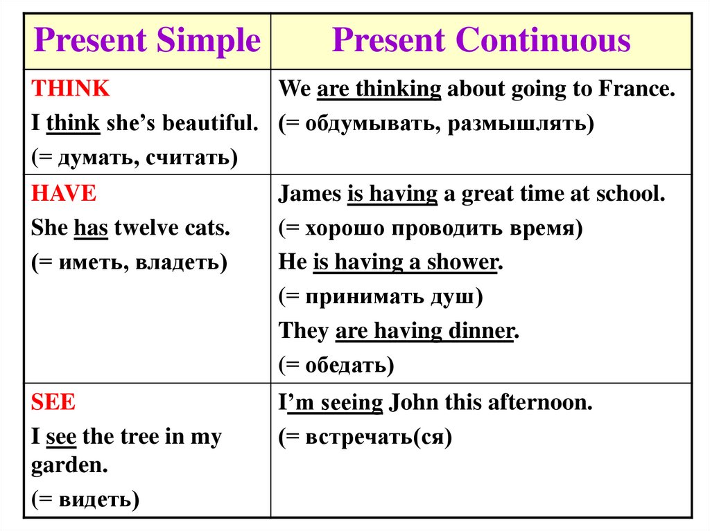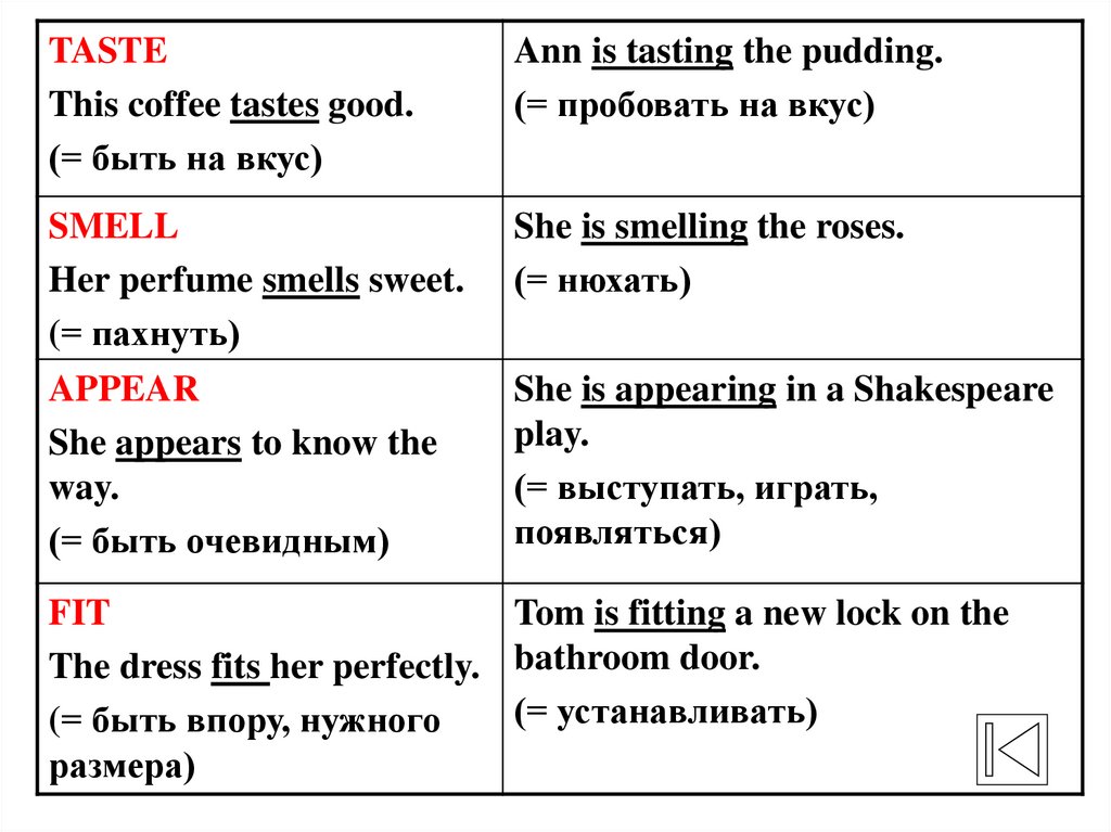 10. Некоторые из этих глаголов могут употребляться в Present Continuous, но с иным значением.