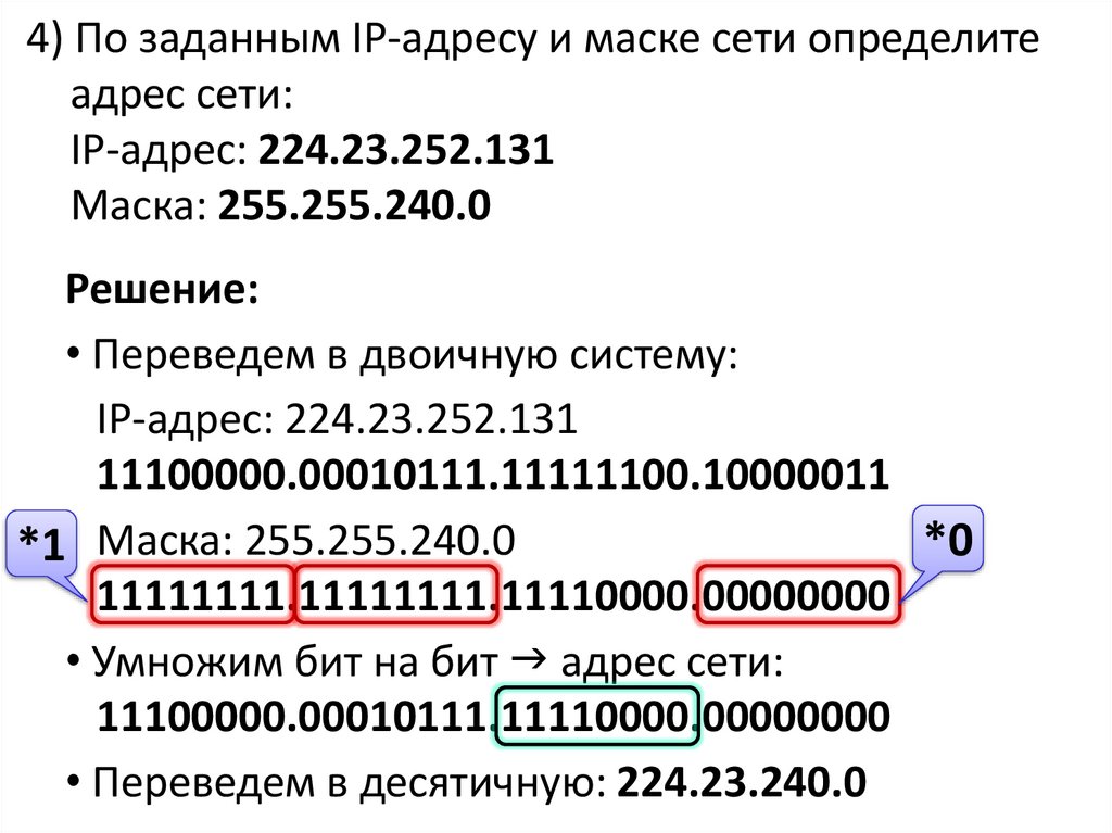 4) По заданным IP-адресу и маске сети определитеадрес сети: