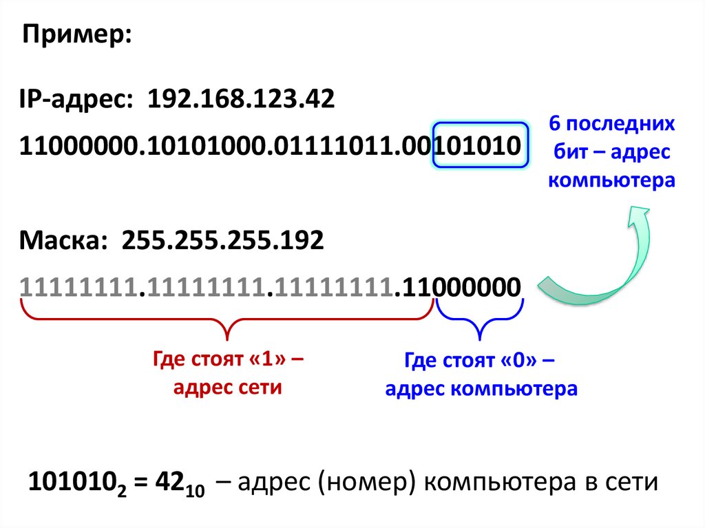 1010102 = 4210 – адрес (номер) компьютера в сети
