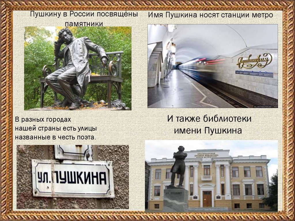 Имя Пушкина носят станции метро