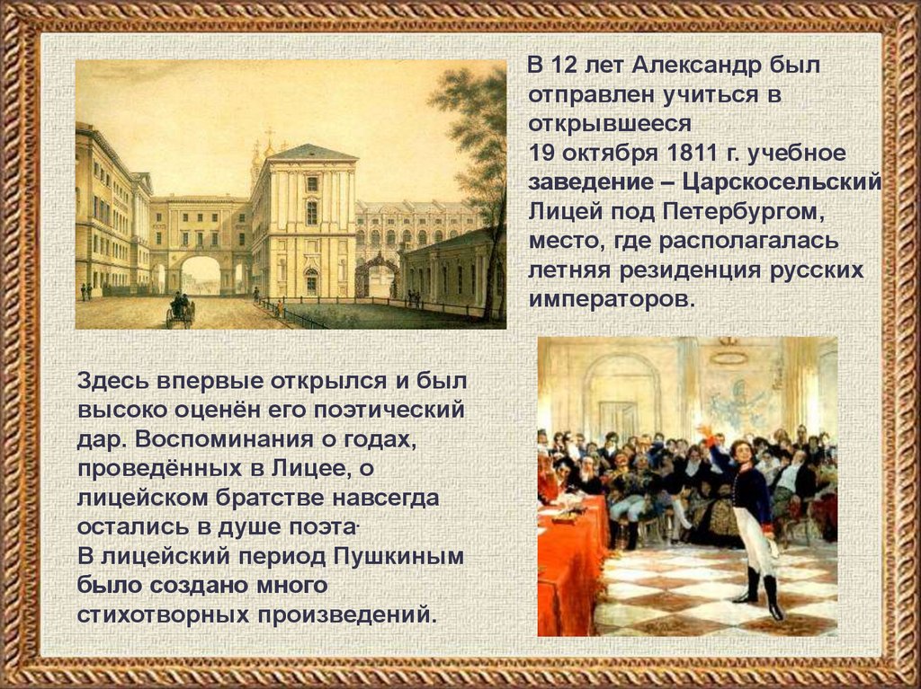 В лицейский период Пушкиным