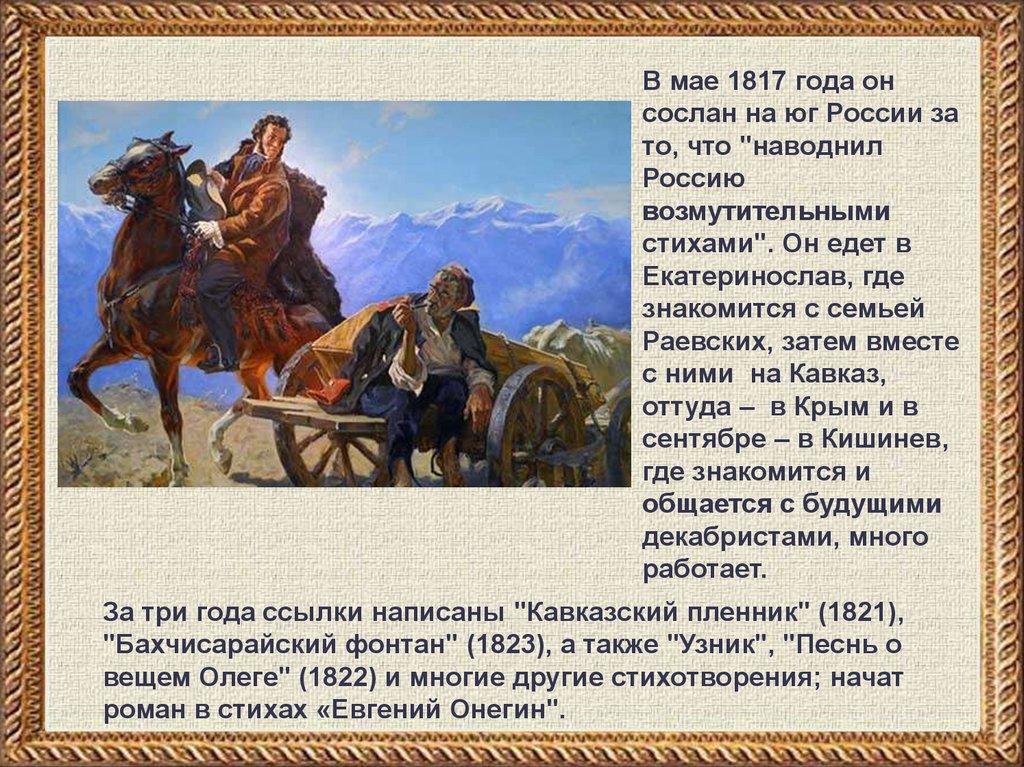 В мае 1817 года онсослан на юг России за