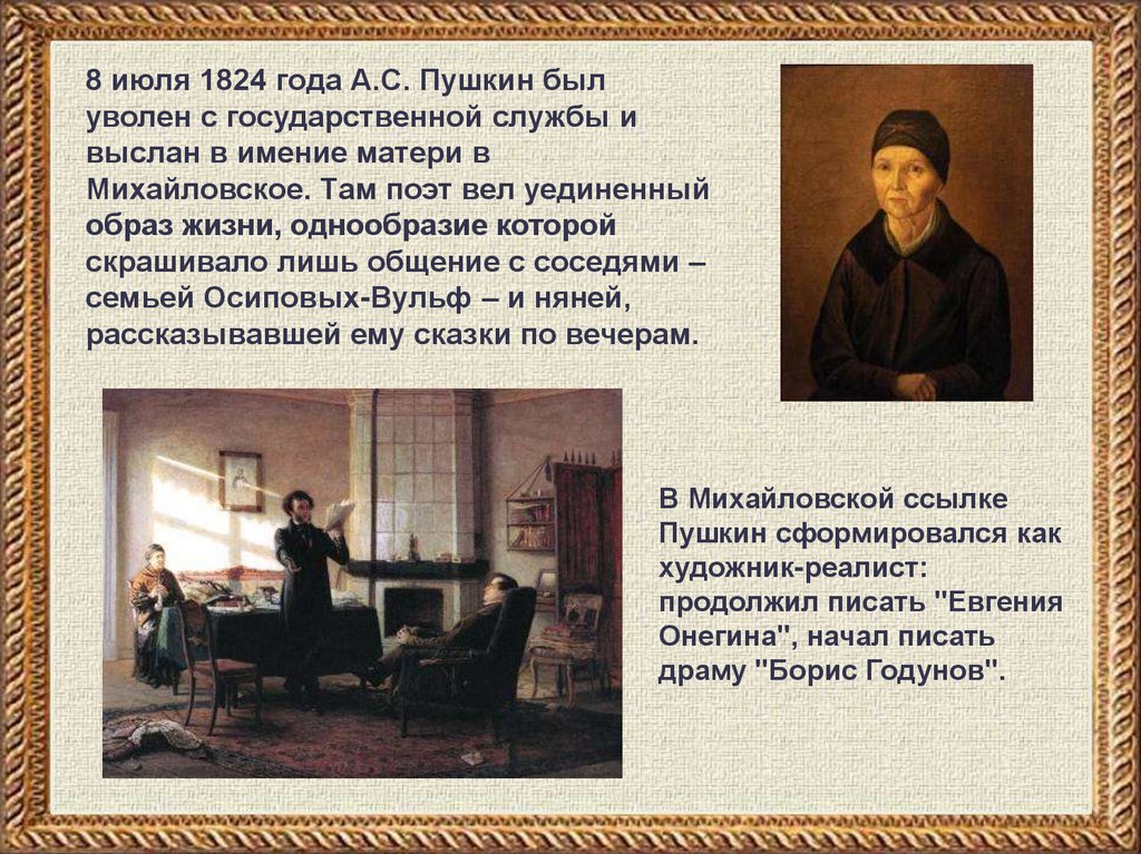 ТВОРЧЕСТВО ПУШКИНАПоэт записывал нянины сказки в отдельную тетрадь и потом, когда