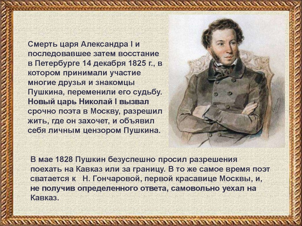 всю жизнь. Из лицея Пушкин был выпущен в