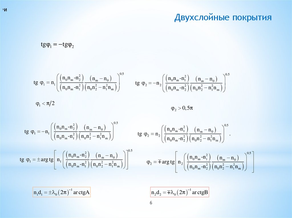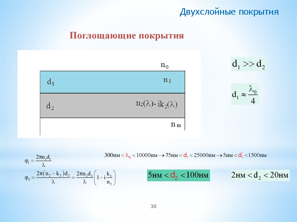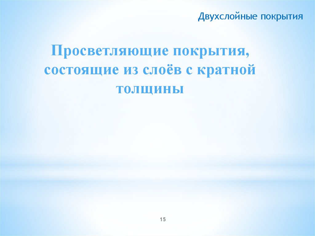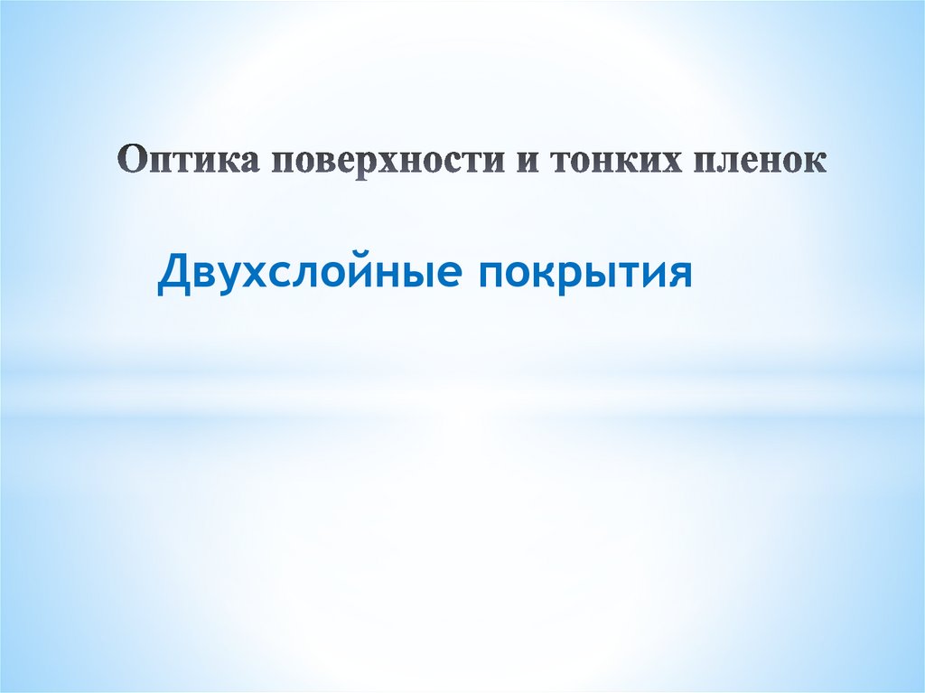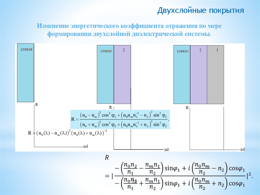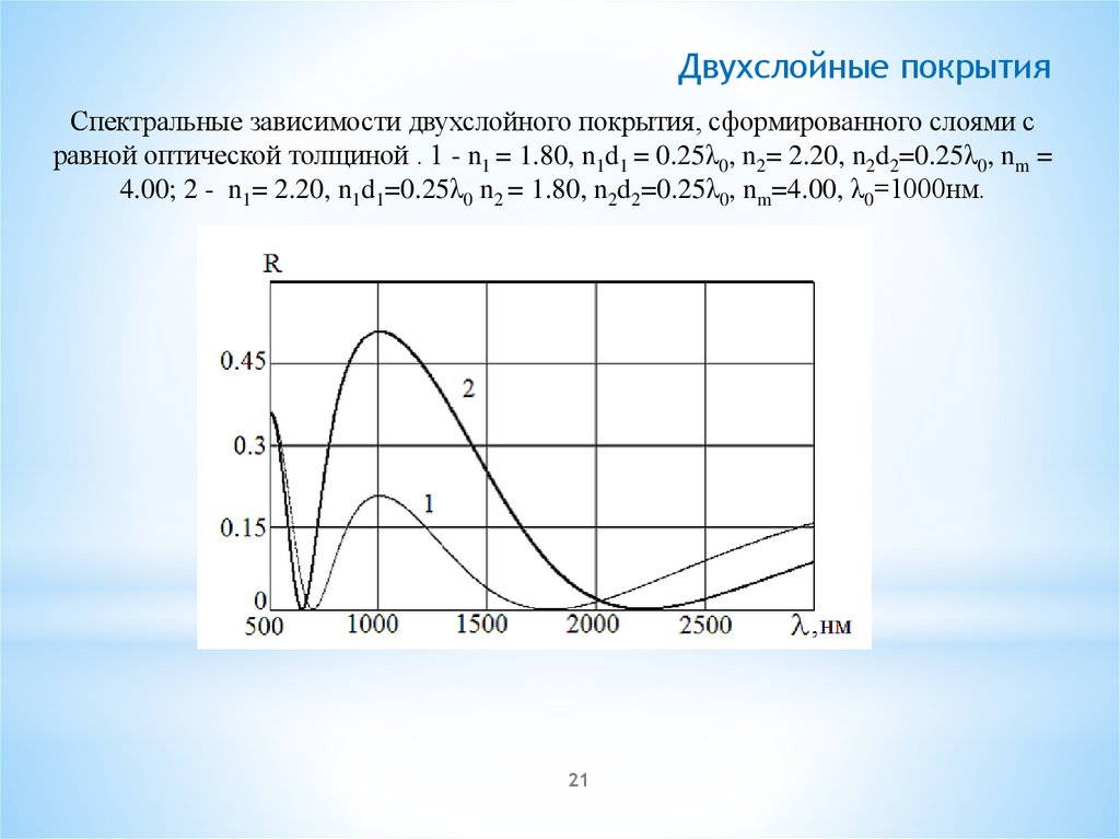 Двухслойные покрытияДвухслойные просветляющие покрытия, сформированные слоями с